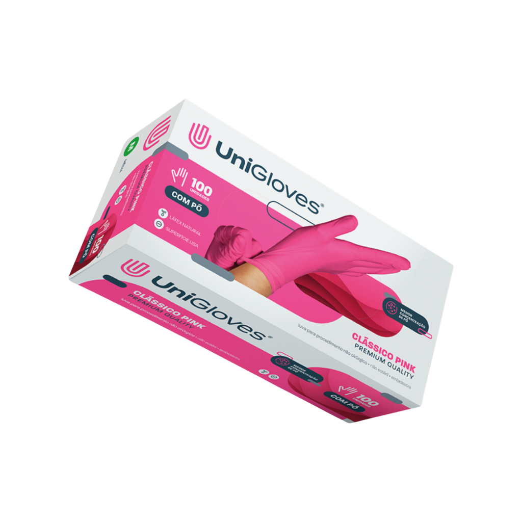 Luva Unigloves Látex Pink Com Pó Reduzido